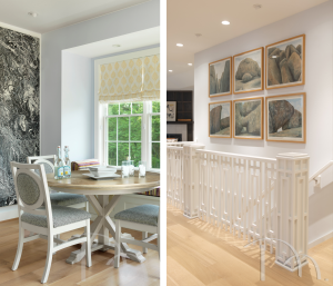 One of my favorite solutions was in the back hallway leading to the garage. We repeated the staircase rail design as wainscoting along the wall, creating a place where the “inside” and “outside” walkers can lean without damaging the drywall. It’s practical, it protects the walls, and it keeps outdoor dirt from traveling further into the home. But it doesn’t look like a walker parking spot. It looks like beautiful, intentional millwork. Because it is.