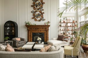 Our clients voiced many “needs” for this living room. Space for plants (lots of plants), as much seating as possible, an elegant yet cozy feel, and a chaise lounge specifically for the woman of the house. Mission accomplished. /Photo by Karen Palmer.