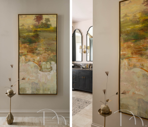 This beautiful piece of art can be seen from the primary bedroom. Take a step to the left for access to the primary bathroom. Take a step to the right to access the water closet and clothes closet. This renovation took an all-in-one-room bath and separated the spaces for a much better traffic flow, without increasing the square footage. /Photo by Karen Palmer